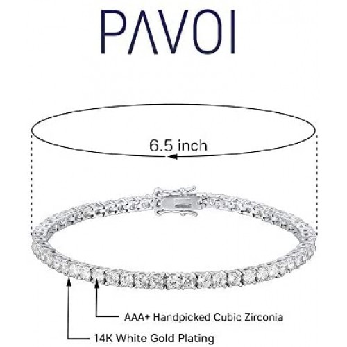 • Tennis bracelet featuring round 3mm AAA+ cubic zirconia stones in four-prong basket settings. Measures 6.5 inches in Length