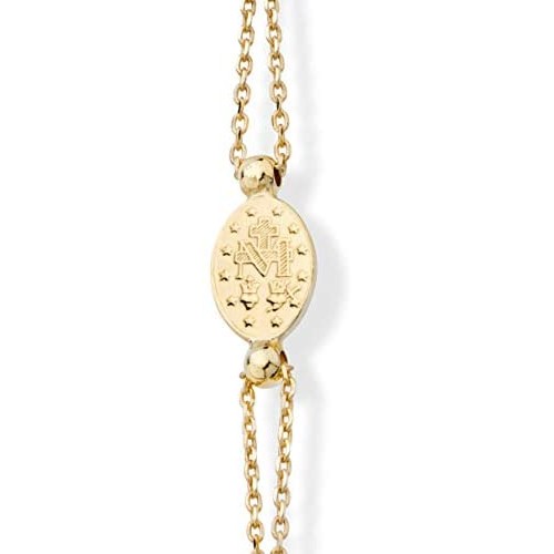 - STYLISH AND INSPIRATIONAL - Show your spiritual side with this dainty 18k gold over 925 sterling silver cultured freshwater pearl rosary bracelet featuring a classic Miraculous Medal of the Virgin Mary and a sideways polished cross. Wear it as a timeless symbol of your faith or as a cool fashion statement. Looks just as beautiful with a casual outfit or a dressy attire. Comfortable and chic for everyday wear. Adjustable in length for a perfect fit. Wear alone or layered with other chains.