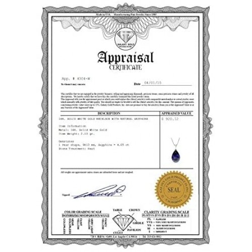 Galaxy Gold 14k 20" White Gold 4.65 Carat Teardrop Natural Sapphire Pendant Necklace