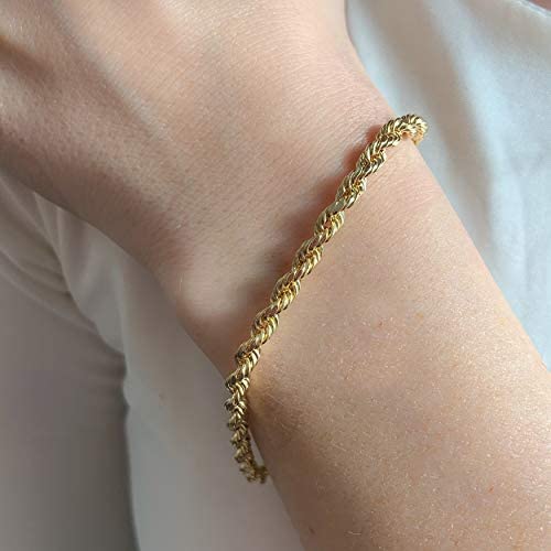 - QUALITY AND VERSATILITY: Accent your look with the glittery shine of this Abbie Cleo rope chain bracelet. Crafted from 10k yellow gold, this bracelet offers a classic elegance that works equally well with casual outfits or your little black dress. Polished to a brilliant shine, this radiant 7.5-inch bracelet features a rope chain that secures with a lobster clasp. This shimmering gold bracelet is the perfect addition to any jewelry collection.
